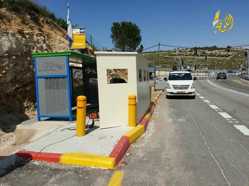 وتظهر الصور جدارًا مقاومًا للرصاص، لتجنب إصابة جنود الاحتلال والمستوطنين خلال انتظارهم حافلات النقل.