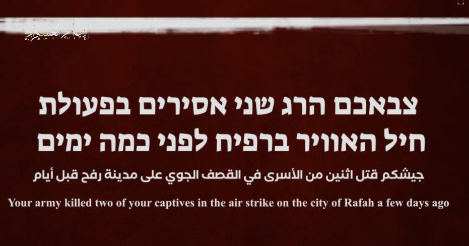 غزة: قالت كتائب القسام، الجناح العسكري لحركة المقاومة الإسلامية (حماس)، إن "جيش الاحتلال قتل اثنين من الأسرى لديها في قصف جوي على مدينة رفح قبل أيام".