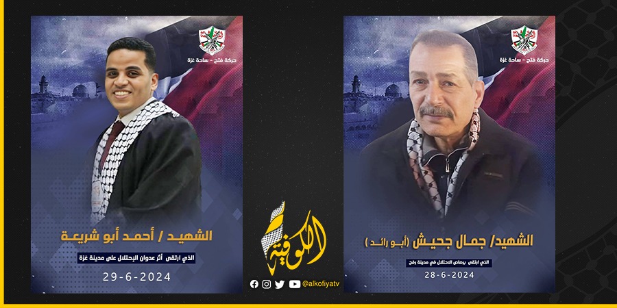 غزة: نعى تيار الإصلاح الديمقراطي في حركة فتح، ساحة غزة، اليوم السبت، الشــهيدين جمال جحيش وأحمد ابو شريعة، اللذين انضما إلى قافلة الشهداء الأبرار جراء عدوان الاحتلال على قطاع غزة.