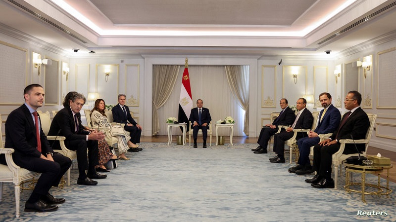 ووصل وزير الخارجية الأميركي، إلى مصر قادما من دولة الاحتلال، حيث التقى بالرئيس المصري في مدينة العلمين الجديدة، وبحثا جهود وقف إطلاق النار في غزة، وفق البيان، الذي أشار إلى أن الاجتماع شهد "التشديد على قوة الشراكة الاستراتيجية التي تربط بين البلدين، وحرصهما على دفع الجهود المشتركة لاستعادة الأمن والاستقرار بالمنطقة".
