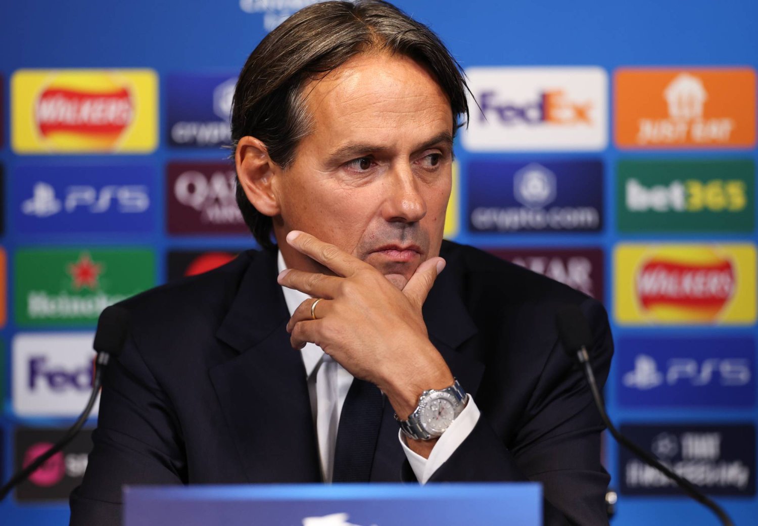 وقال: «نعرف أنكم تخوضون كثيراً من المباريات. نستمتع بصفتنا مدربين بالإعداد لهذه المباريات. أعلم أن هناك بعض المشاكل، لكننا نطمح للتأهل. سأتبع سياسة المناوبة بين اللاعبين. نفتقد اليوم (فيدريكو) ديماركو و(ماركو) أرناوتوفيتش لكننا اعتدنا وجود عدد محدود من اللاعبين للمناوبة بينهم لمدة عامين الآن».