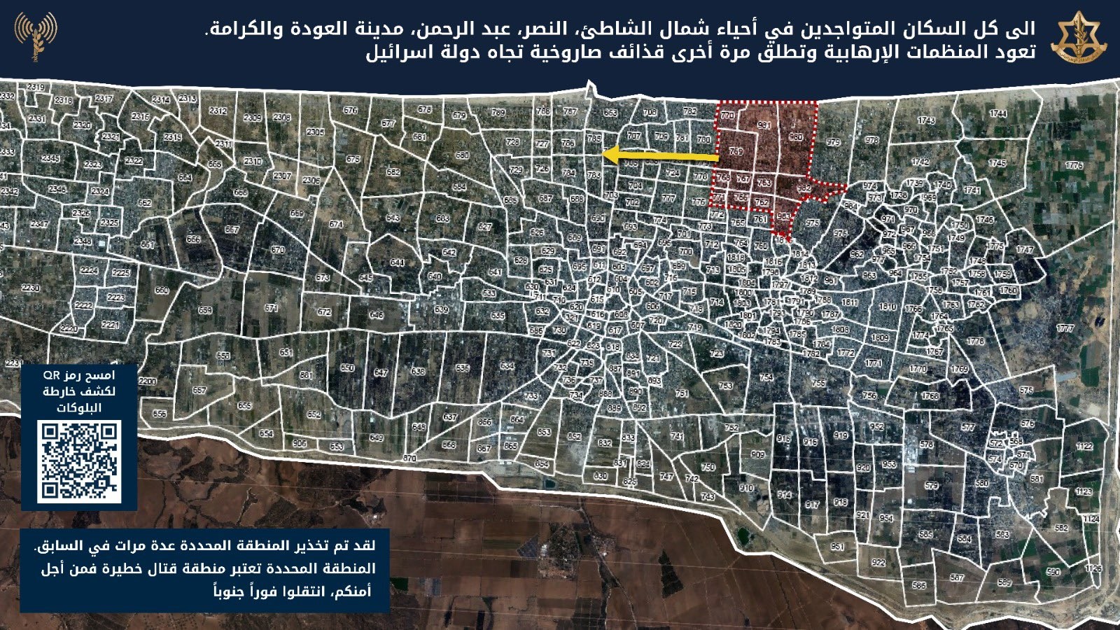 وقال المتحدث باسم جيش الاحتلال أفيخاي أدرعي في بيان نشره عبر صفحته على منصة "إكس"، "الى كل السكان المتواجدين في قطاع غزة وتحديدًا في أحياء شمال الشاطئ، النصر، عبد الرحمن، مدينة العودة والكرامة".
