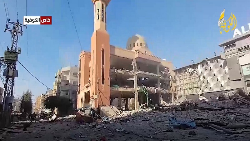 خاص بالفيديو || كاميرا الكوفية ترصد لحظة قصف مسجد الفاروق في مخيم النصيرات وسط قطاع غزة