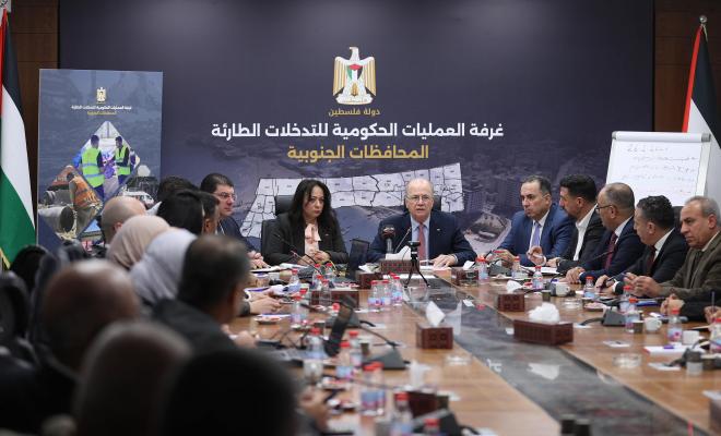 يذكر أن غرفة العمليات الحكومية تضم ممثلين عن أكثر من 20 مؤسسة رسمية، وتعمل عبر فرق عمل من مختلف الوزارات والهيئات في الضفة والقطاع، وتستعين بمؤسسات أخرى بحسب الاحتياج.
