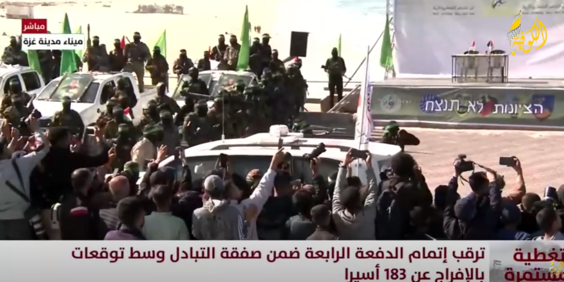 اللحظات الأولى لتسليم المحتجز الإسرائيلي الأمريكي كيث سيغال للصليب الأحمر