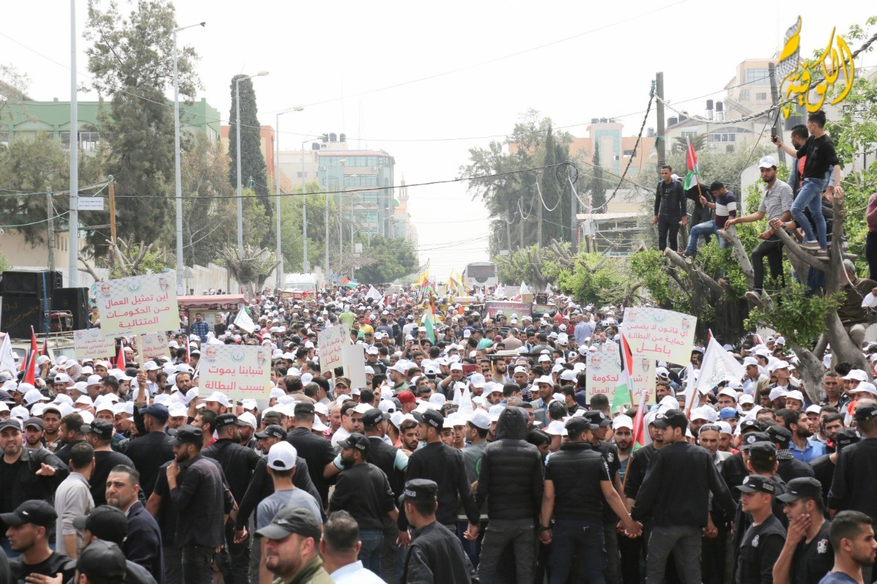 وانطلقت المسيرة من مفترق الجلاء (شارع الثورة) وانتهت بوقفة للعمال أمام وزارة العمل وسط مدينة غزة.