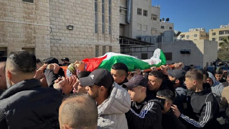وانطلق موكب التشييع من مستشفى رفيديا بنابلس باتجاه مخيم عسكر الجديد، تمهيدا لوداع أسرته له والصلاة عليه ثم مواراة جثمانه الثرى.