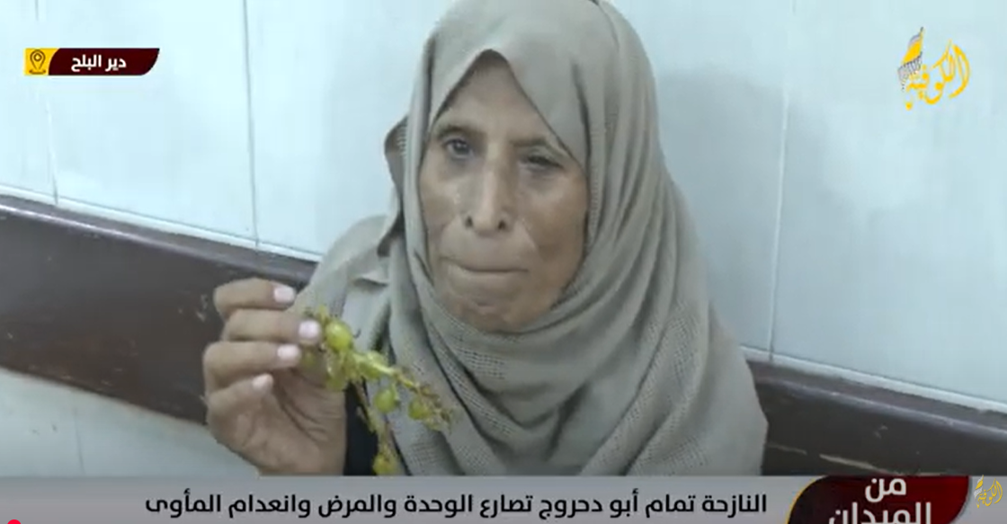 المسنة تمام أبو دحروج..نازحة على حافة الموت.. لا سقف يحميها ولا دواء يداويها