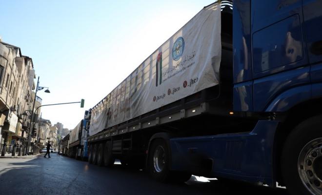 وصول قافلة مساعدات أردنية جديدة مكونة من 38 شاحنة لغزة