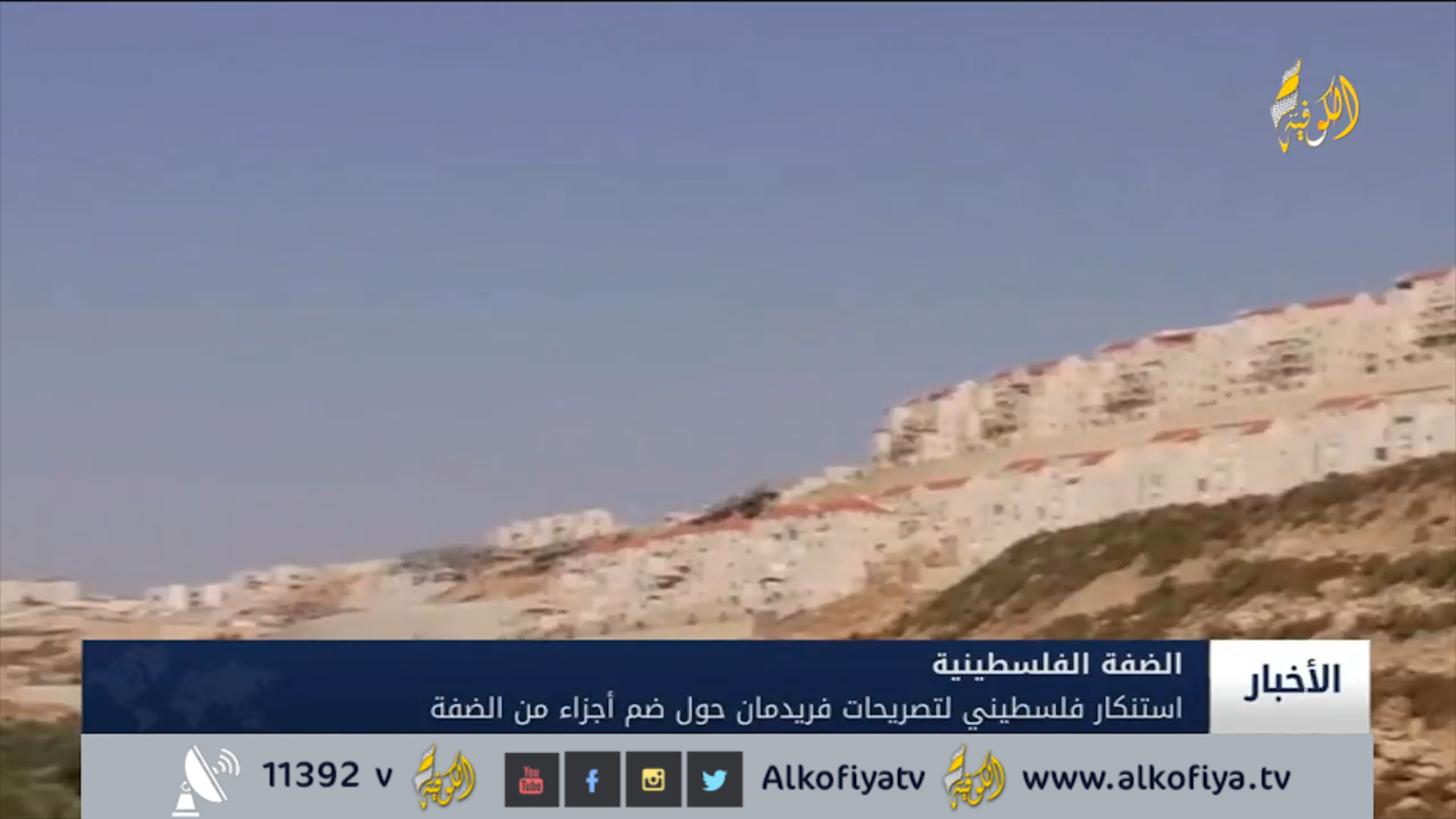 استنكار فلسطيني لتصريحات فريدمان حول ضم أجزاء من الضفة