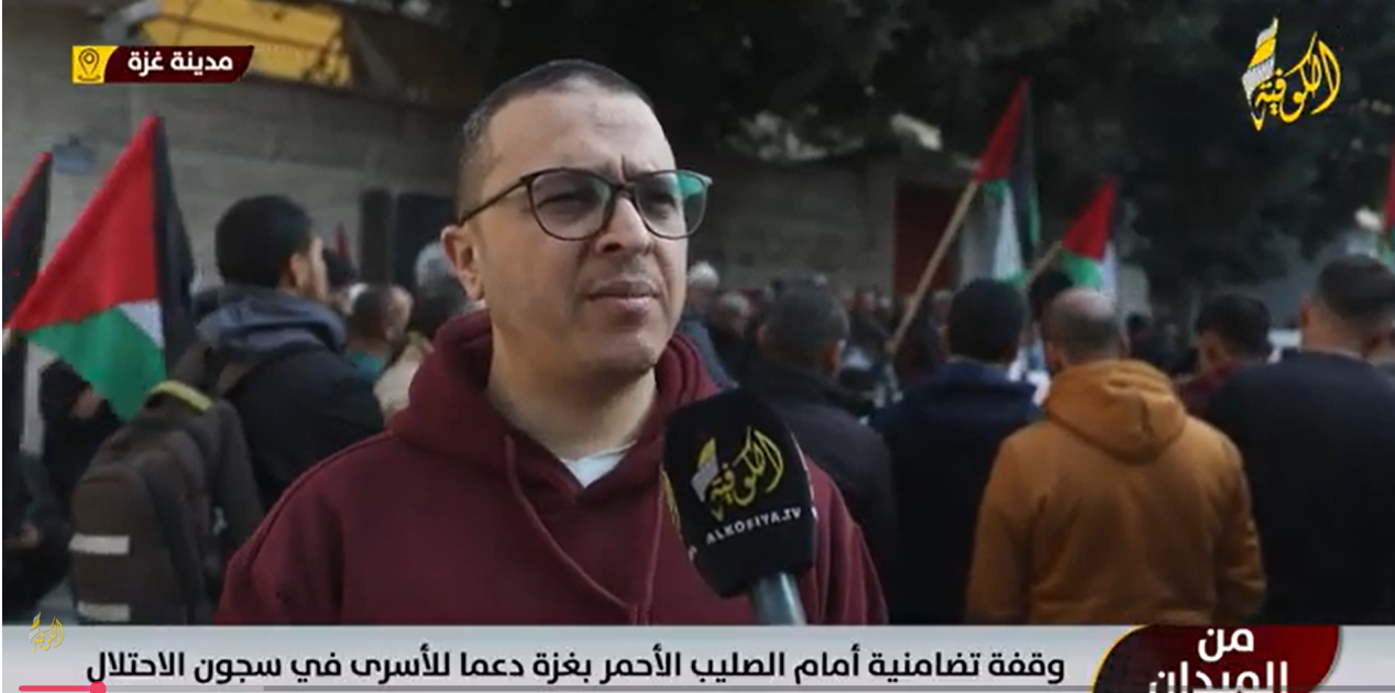 وقفة تضامنية أمام الصليب الأحمر بغزة دعما للأسرى في سجون الاحتلال