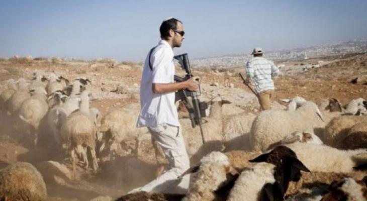 مستوطنون يستولون على غرفة زراعية وآخرون يرعون أغنامهم في قرية المغير
