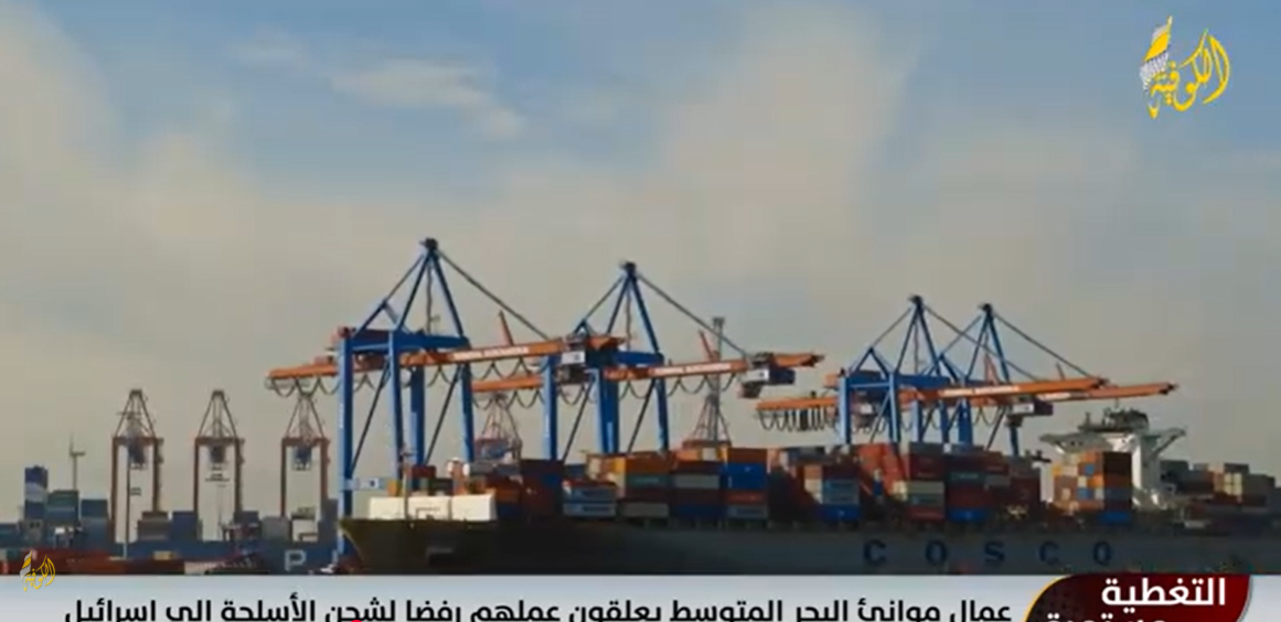 تقرير|| عمال موانئ البحر المتوسط يعلقون عملهم رفضا لشحن الأسلحة إلى إسرائيل