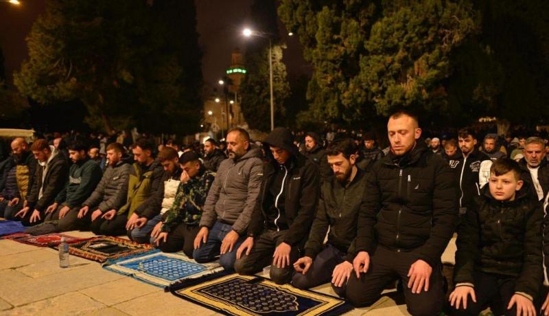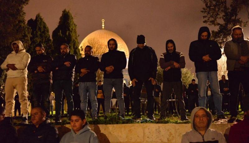 الكوفية القدس المحتلة – أدى آلاف المصلين، مساء اليوم، صلاتي العشاء والتراويح في اليوم الأول من شهر رمضان المبارك في المسجد الأقصى، وسط قيود وإجراءات مشددة فرضتها قوات الاحتلال الإسرائيلي.