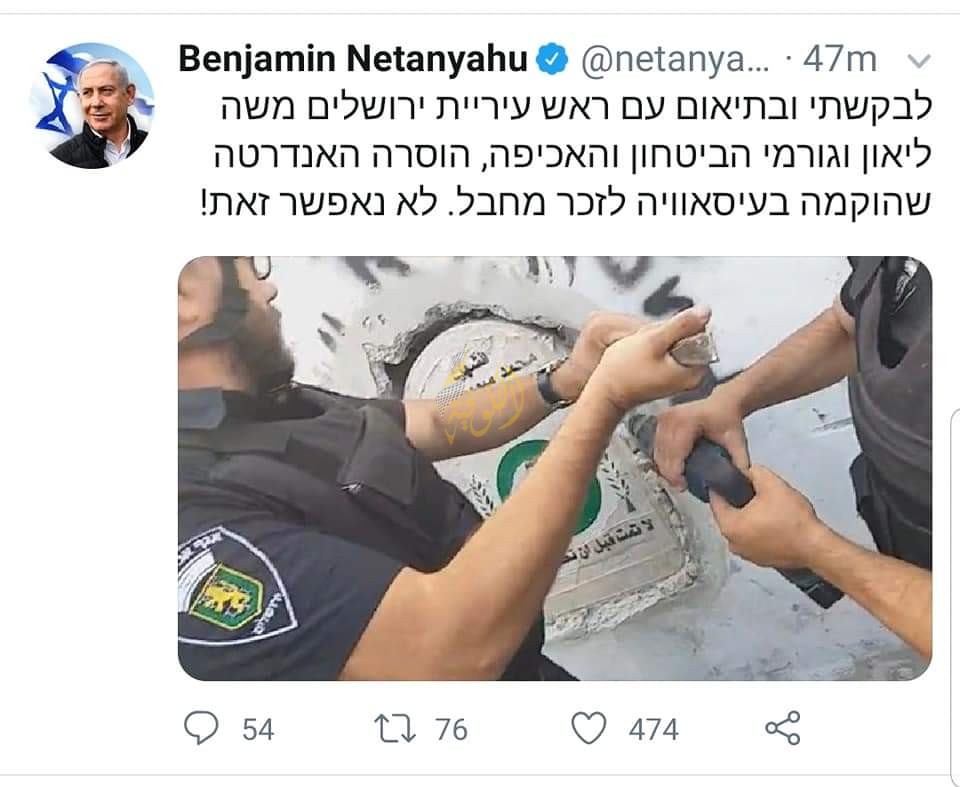 نتنياهو: بأوامر مني تم تحطيم النصب التذكاري للشهيد "محمد عبيد" بالعيسوية