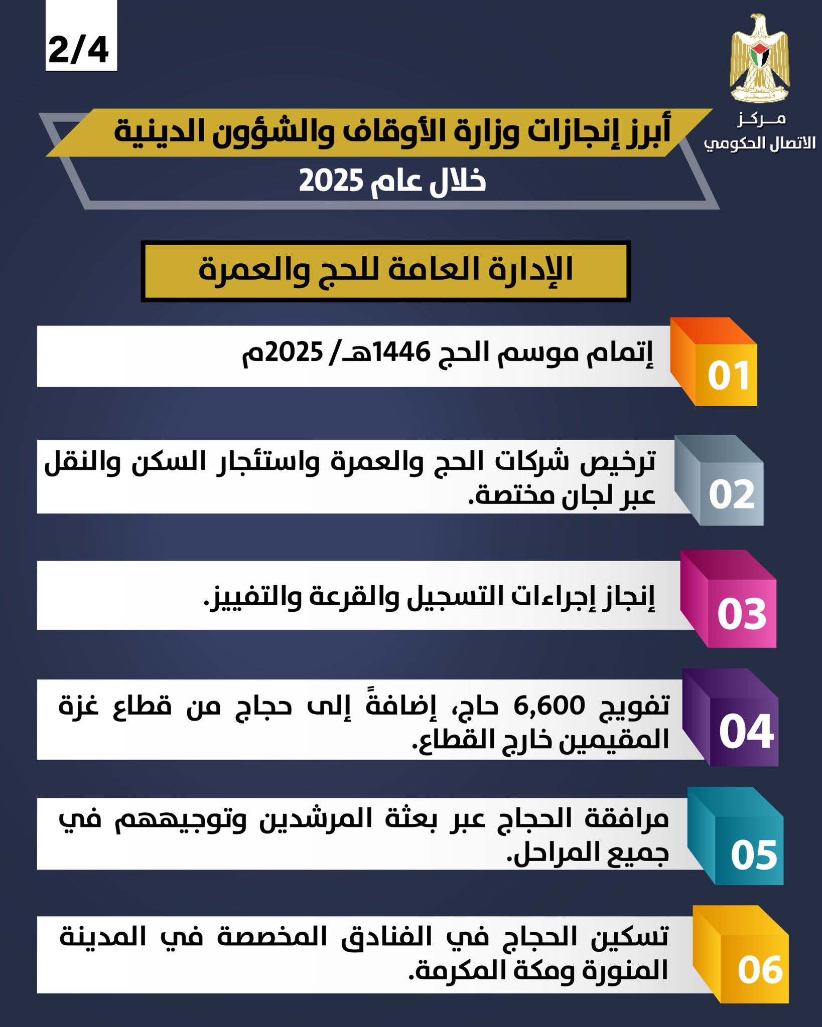 الكوفية رام الله - نشر مركز الاتصال الحكومي تقريرًا يستعرض أبرز أعمال وإنجازات وزارة الأوقاف والشؤون الدينية خلال عام 2025، حيث واصلت تنفيذ خططها وبرامجها التطويرية في مختلف مجالات عملها.