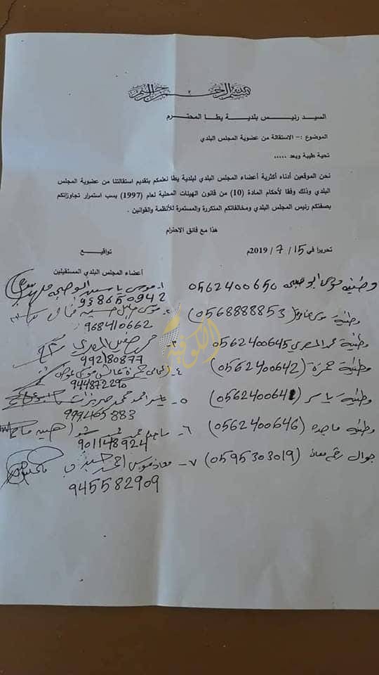 بالأسماء.. استقالة جماعية لـ7 من أعضاء مجلس بلدي يطا