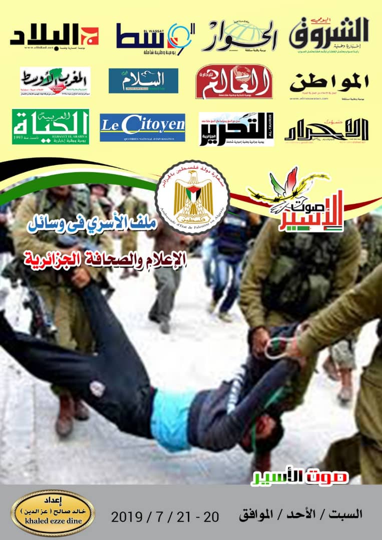 الجزائر: سلطت الصحف الجزائرية، فيما يخص الشأن الفلسطيني، الضوء على ملف الأسرى الفلسطينيين، وركزت على تفاصيل استشهاد الأسر طقاطقة في سجون إسرائيل، وكذا برقيات التهنئة التي بعث بها الأسرى في سجون الاحتلال إل الشعب الجزائري الشقيق بمناسبة فوز منتخب الخضر بكأس الأمم الأفريقية.