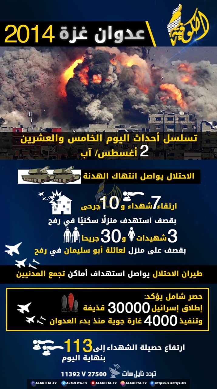 عدوان غزة 2014.. تسلسل أحداث اليوم الخامس والعشرين