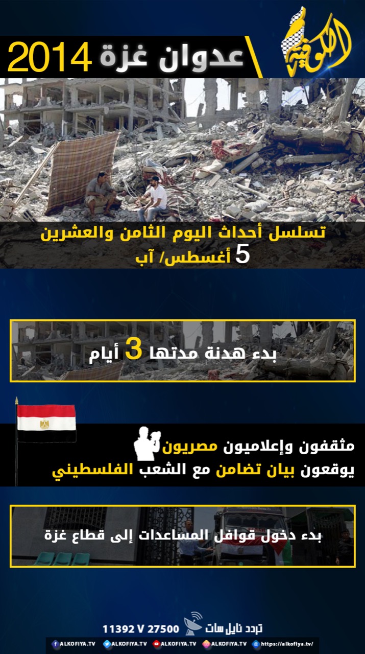 عدوان غزة 2014.. تسلسل أحداث اليوم الثامن والعشرين