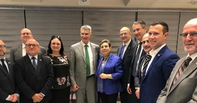رام الله: التقت عضو اللجنة التنفيذية لمنظمة التحرير الفلسطينية د. حنان عشراوي اليوم، وزير خارجية مالطا كارميلو أبيلا والوفد المرافق له بحضور رئيس المكتب التمثيلي لجمهورية مالطة روبن غاوتشي، حيث جرى بحث آخر التطورات والمستجدات السياسية.