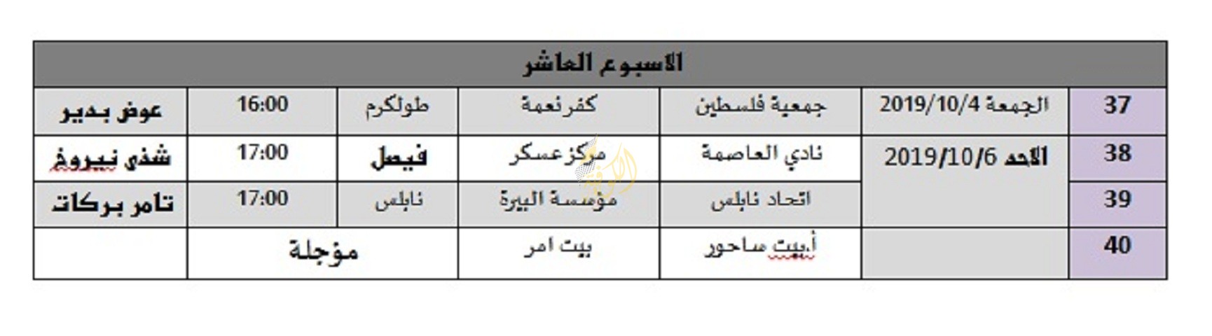 جدول الأسبوع العاشر من الدوري النسوي العام