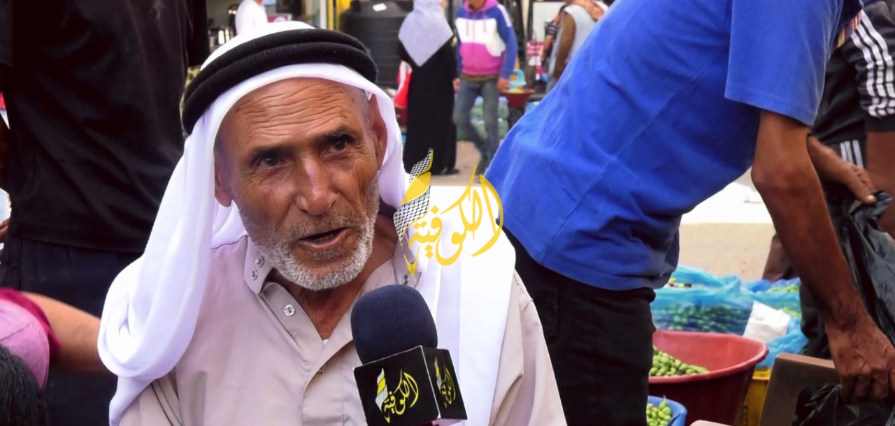 وفي إحدى زوايا السوق، يجلس الستيني جمعة أبو عواد الذي يعمل في مجال بيع الزيت والزيتون منذ عشرة أعوام على بسطته الخاصة ببيع الزيت والزيتون، مستقبلاً بعض الزبائن القادمين لشراء كميات من الزيتون ويصف الموسم بالسيء مقارنة بالأعوام الماضية.