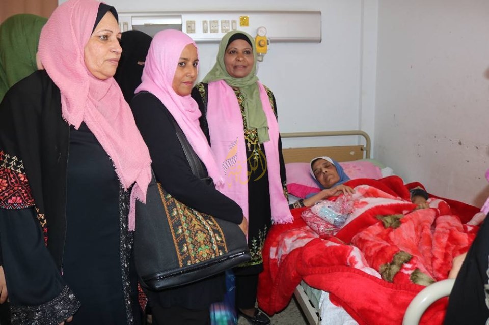 خانيونس: نظم مجلس المرأة في حركة فتح بساحة غزة، اليوم الأحد، زيارة إلى قسم الأورام بمستشفى غزة الأوروبي لتفقد أحوال مرضى السرطان، بالتزامن مع أكتوبر الوردي.