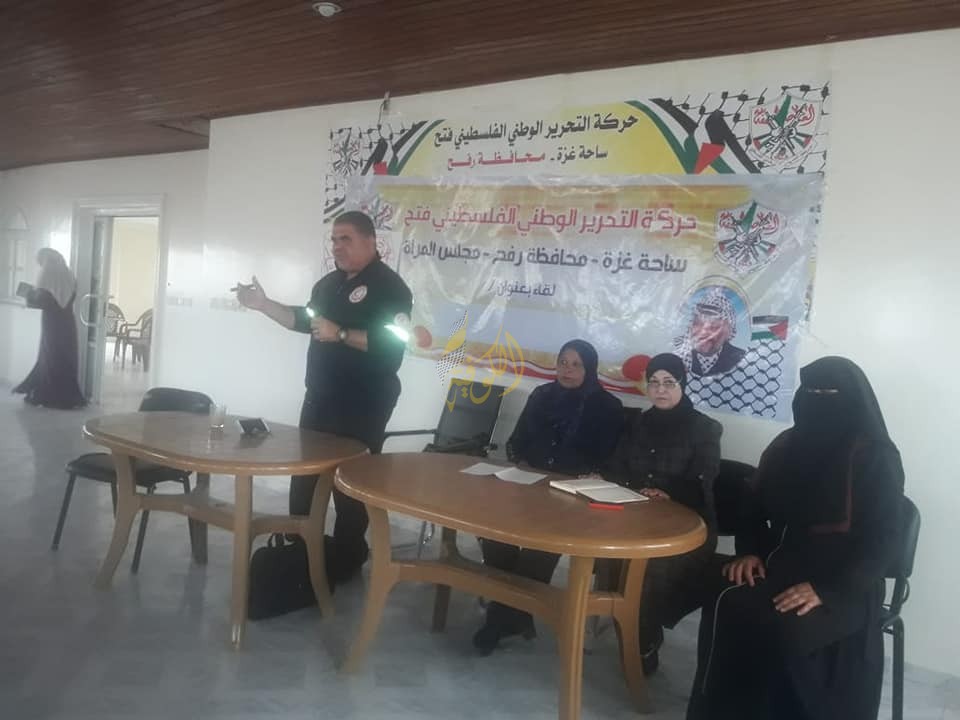 رفح: افتتح مجلس المرأة فى حركة فتح بساحة غزة، اليوم السبت، اللقاء الأول لدورة الإسعافات الأولية في محافظة رفح.