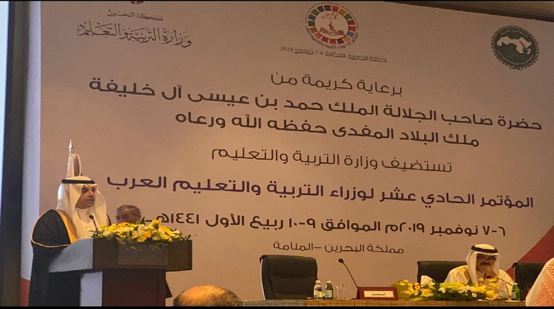 وأضاف المالك، فى كلمته أمام المؤتمر الحادى عشر لوزراء التربية والتعليم العرب، الذى اختتم أعماله اليوم الخميس بالعاصمة البحرينية المنامة، إن "لدينا حاليا فسحة لتصحيح المسارات، وفرصة لتدارك ما فات، ولا يجب أن نفوتها على أنفسنا وعلى شعوبنا"، لتحقيق الهدف الرابع المنشود من أهداف التنمية المستدامة 2030، المتعلق بالتعليم، والذى تنص غايته الأولى على: "ضمان أنْ تتمتع الناشئة جميعا، ذكوراً وإناثاً، بتعليم ابتدائي وثانوي مجاني ومنصف وجيد بحلول عام 2030".