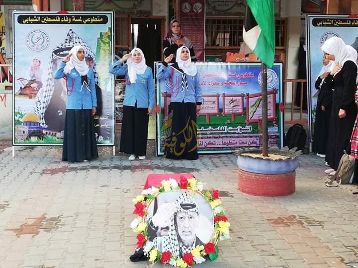 ونظمت لجان الشبيبة بمدرسة شفا عمر الثانوية للبنات في محافظة رفح، جنوبي قطاع غزة، إذاعة مدرسية لإحياء ذكرى استشهاد الرئيس ياسر عرفات.
