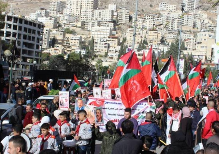 نابلس: نظمت الجبهة الشعبية لتحرير فلسطين، مسيرة جماهيرية في مدينة نابلس شمالي الضفة الفلسطينية، إحياءً للذكرى الـ52 لانطلاقتها.