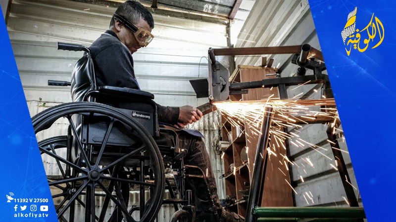 غزة - عدلي أبوطه: لم يستسلم الجريح جلال أبو حية، صاحب الـ 40 عامًا، للإعاقة التي لحقت به بفعل رصاصة أطلقها نحوه جنود الاحتلال الإسرائيلي خلال مشاركته في مسيرات العودة يوم الرابع عشر من مايو/أيار من العام الماضي قرب الحدود الشرقية لمحافظة خان يونس جنوبي قطاع غزة وأدت لإصابته بشللٍ نصفي، فواجه تلك الإعاقة بكل صلابة وإبداع فلم تمنعه من ممارسة حياته اليومية وهو على كرسي متحرك ينتقل به بين زوايا ورشته المتواضعة ويقوم بصناعة السيوف والخناجر بأدوات بسيطة.