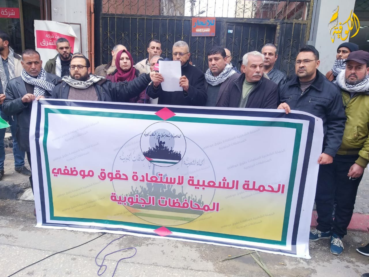 ومن أبرز مطالب الحملة الشعبية لاستعادة حقوق موظفي المحافظات الجنوبية، إنهاء ملف موظفي الأجهزة الأمنية من تعيينات 2005، وإلغاء التقاعد المالي غير القانوني، وتوحيد نسبة صرف رواتب الأسرى من أبناء قطاع غزة بنفس النسبة التي يتم صرفها للأسرى من أبناء المحافظات الشمالية.