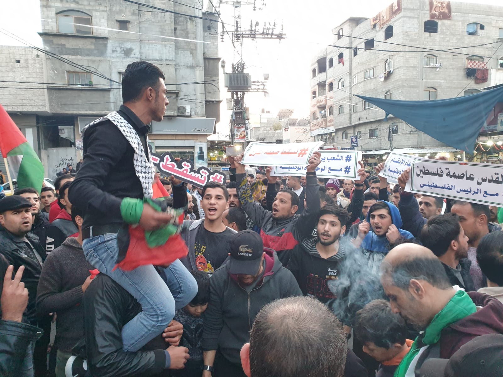 خاص بالصور والفيديو|| مسيرات غضب تجوب شوارع مخيم جباليا رفضًا لـ"صفقة ترامب"