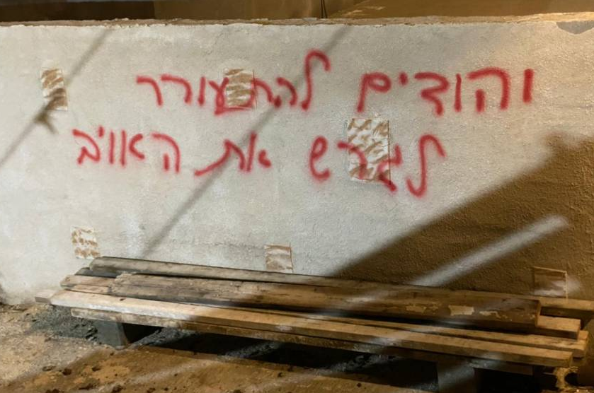 مستوطنون يخطون شعارات عنصرية و تحريضية شرق رام الله