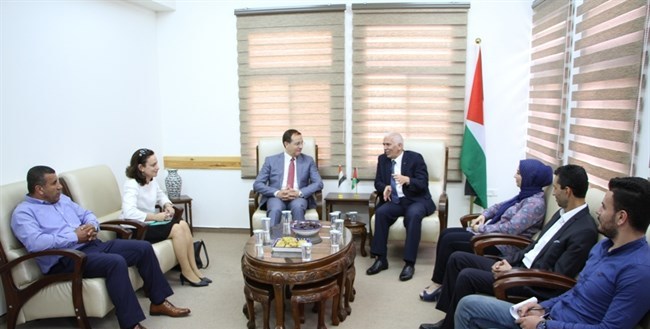 الخليل: أطلع محافظ الخليل كامل حميد ظهر اليوم الخميس سفير جمهورية مصر العربية لدى دولة فلسطين عصام الدين عبد الحميد على أوضاع المحافظة وذلك بحضور طاقم المحافظة.