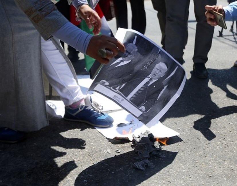 رام الله : أحرق عشرات المواطنين، اليوم الثلاثاء بمدينة البيرة، صور الرئيس الأمريكي دونالد ترامب ورئيس وزراء الاحتلال بنيامين نتنياهو، خلال وقفة احتجاجية نظمتها القوى الوطنية والإسلامية، ردًا على قرار الإدارة الأميركية وقف تمويل وكالة غوث وتشغيل اللاجئين "الأونروا".