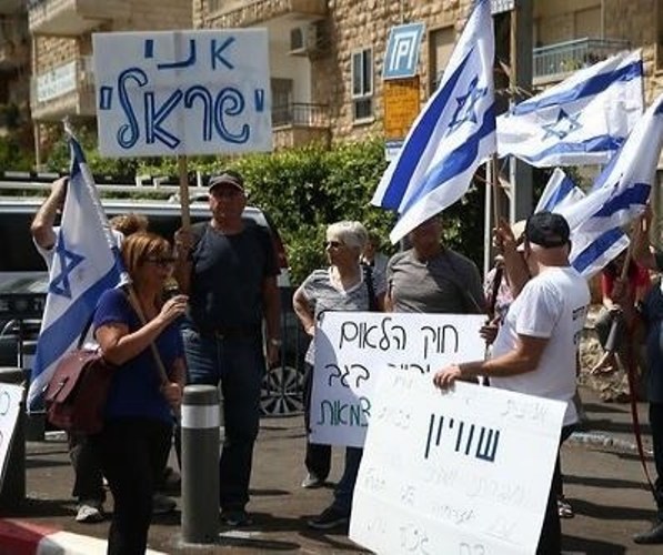 مظاهرة أمام منزل ريفلين ضد "قانون القومية"