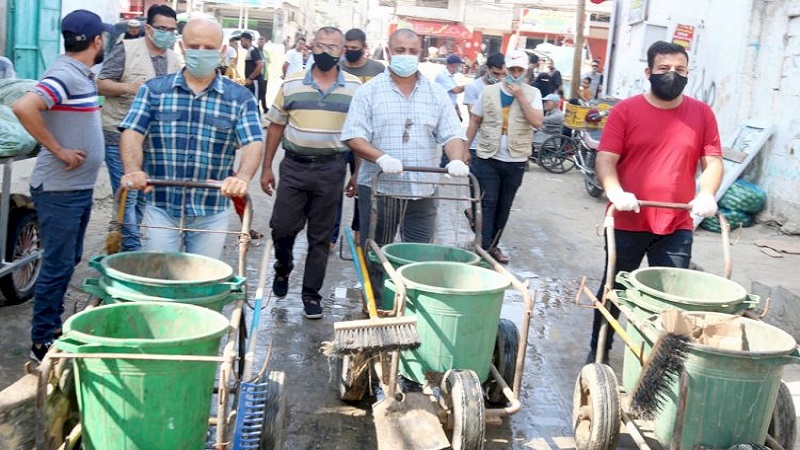 غزة: نفذت حركة فتح ساحة غزة في محافظة رفح لجنة اللاجئين وبالتعاون مع وكالة غوث وتشغيل اللاجئين مبادرة "تطوعنا حياة " لتنظيف وتعقيم شوارع مخيم الشابورة .