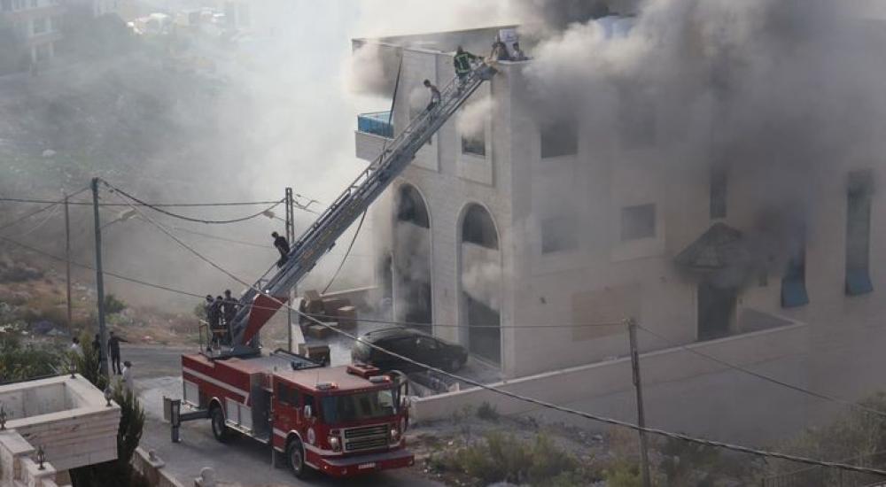 بالصور|| إنقاذ 3 مواطنين من حريق نشب بمستودع إلكترونيات في بيتونيا