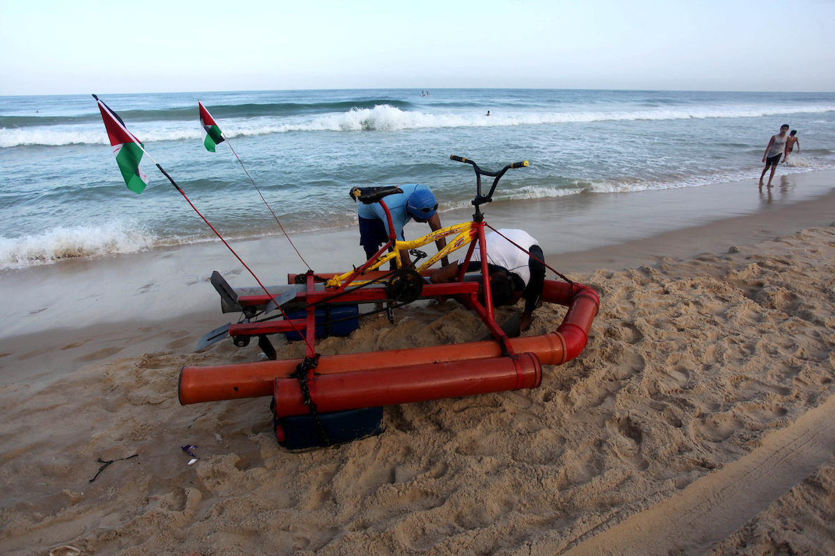 غزة - عمرو طبش: استطاع الشاب محمد الرضيع ابتكار دراجة مائية كنوع جديد في قطاع غزة، من أدوات بسيطة ومستهلكة جداً، حيث تعتبر التجربة الأولى في صنع دراجة مائية للترفيه داخل البحر، وإنقاذ الغرقى داخل البحر في وقت أقل.