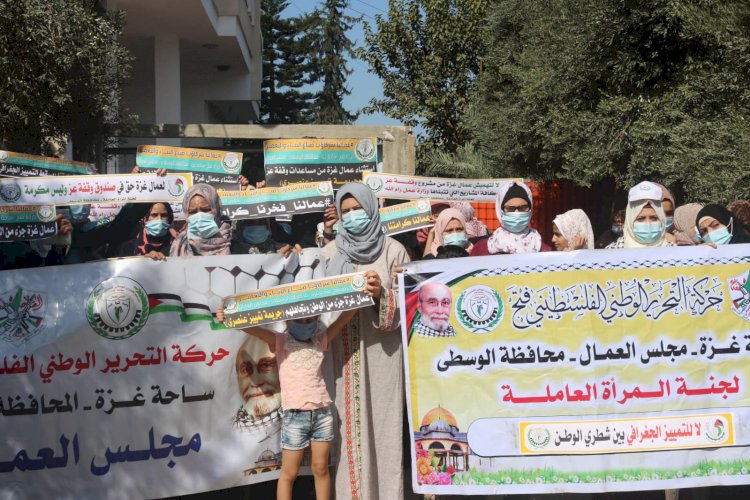 غزة: نظمت لجنة المرأة العاملة في مجلس العمال بتيار الإصلاح الديمقراطي في حركة فتح بمحافظة الوسطى، صباح اليوم الخميس، وقفة احتجاجية رفضا لسياسة التمييز الجغرافي التي تنتهجها حكومة اشتيه في رام الله، واستثناء العاملات المتضررات من تفشي جائحة كورونا في الاونة الاخيرة.