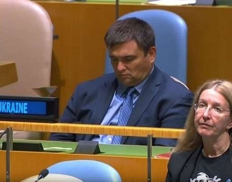 نوم عميق لوزير خارجية أوكرانيا أثناء كلمة رئيسه بالأمم المتحدة