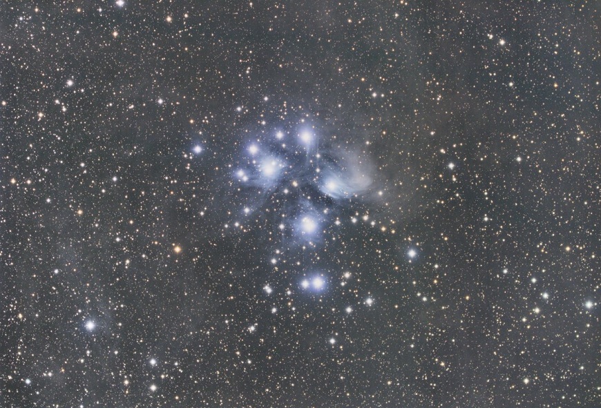 وعند التقاط صور لهذا العنقود سوف يظهر أثر السديم الذي تكونت منه هذه النجوم، ومن خلال المنظار الثنائي سيظهر العديد من النجوم الأخرى، ومن خلال تلسكوب كبير يمكن رؤية بعض المواد السديمية حول النجوم.
