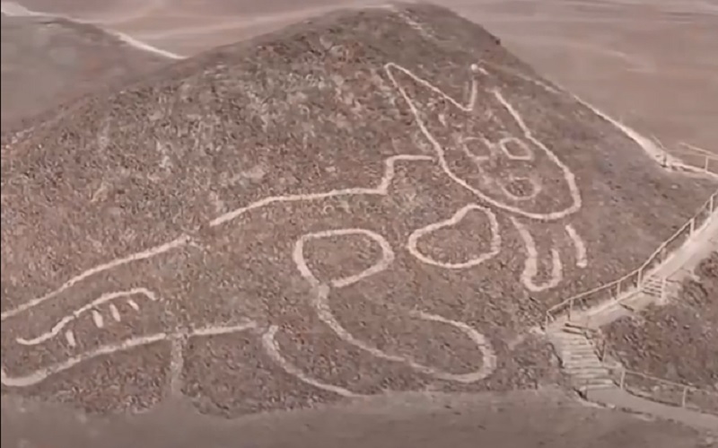 وكالات: نشرت إذاعة صوت ألمانيا "دويتشه فيله"، مقطع فيديو يرصد رسم القط الأثري، الذي تم اكتشافه في صحراء نازكا في بيرو.