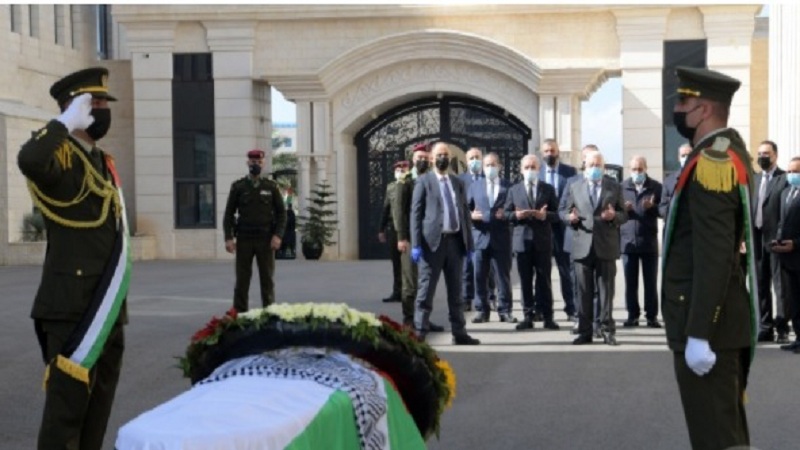 رام الله: شُيع ظهر اليوم الأربعاء، جثمان أمين سر اللجنة التنفيذية لمنظمة التحرير صائب عريقات، من مقر الرئاسة بمدينة رام الله بمشاركة الرئيس محمود عباس.