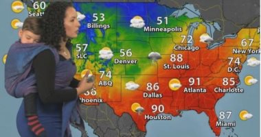 الكوفية وكالات:فاجأت سوزى مارتن، مقدمة نشرة الأخبار الجوية فى برنامجGood Morning America ، متابعيها بظهورها حاملة طفلها على ظهرها فى مشهد غير تقليدى.