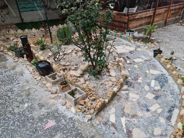 خانيونس: تداول رواد مواقع التواصل الإجتماعي، اليوم الأربعاء، صور تظهر سقوط حبات البرد فوق عدد من المناطق بقطاع غزة.
