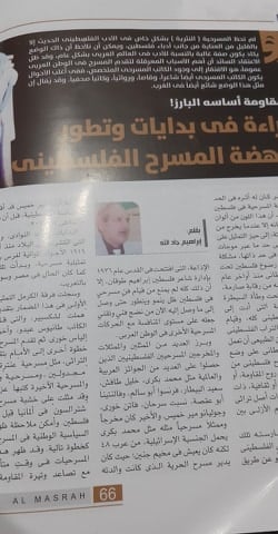 القاهرة: احتفت مجلة "المسرح" التي تصدرها الهيئة العامة للكتاب في مصر، بالإبداع المسرحي المقاوم في فلسطين.